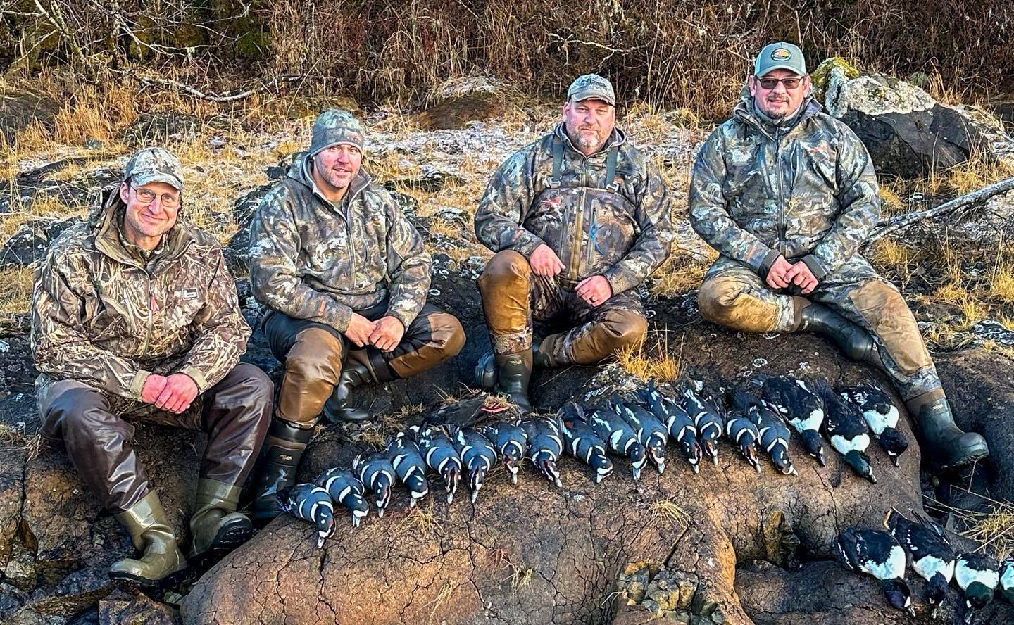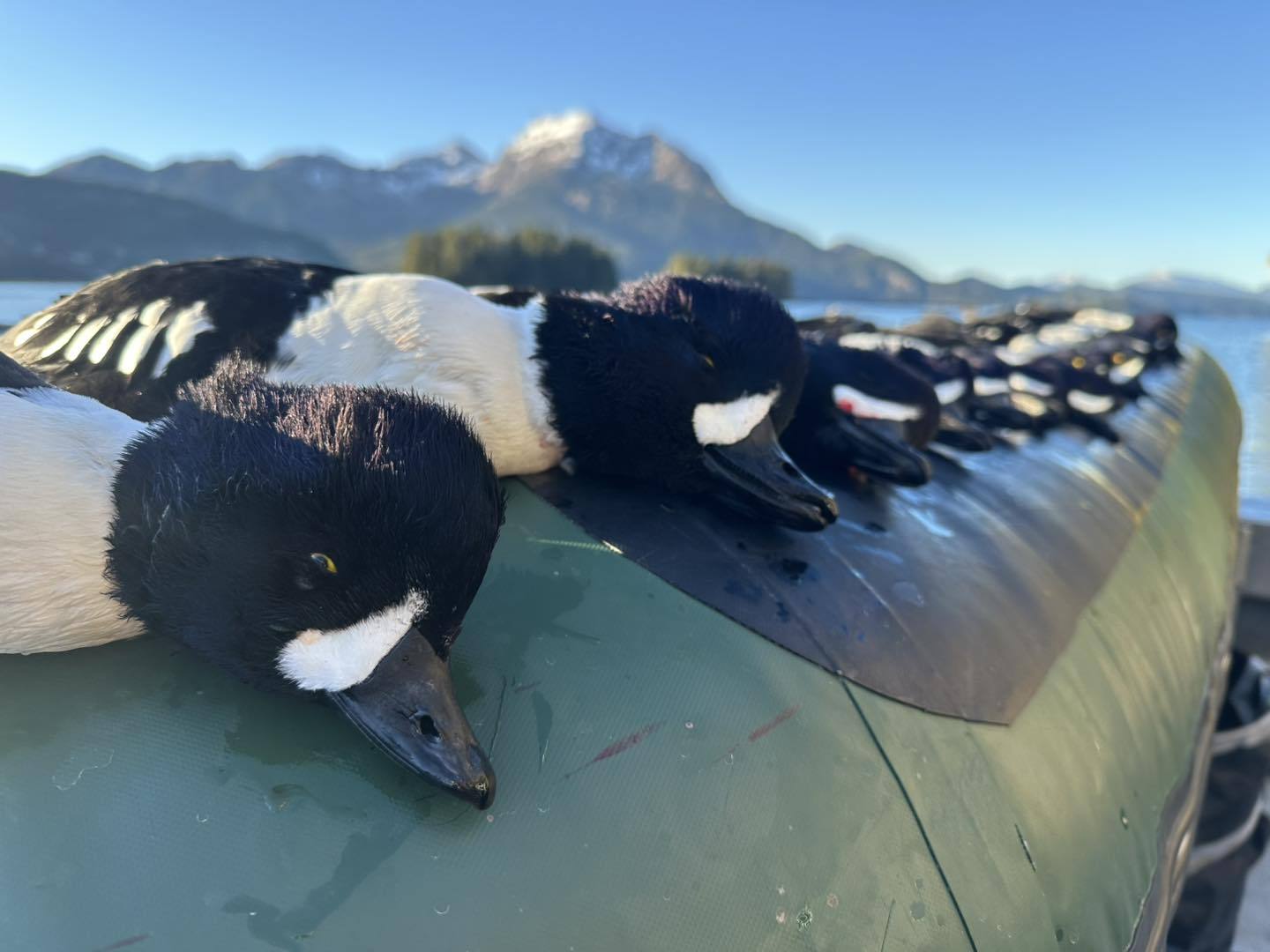 Our main targeted species on our Valdez hunts are harlequin, barrows goldeneye, black scoter, surf scoter, old squaw, common mergansers, bufflehead, great scuap, and red-breasted mergansers. You will also have chances at harvesting a variety of other species depending on the season’s weather.